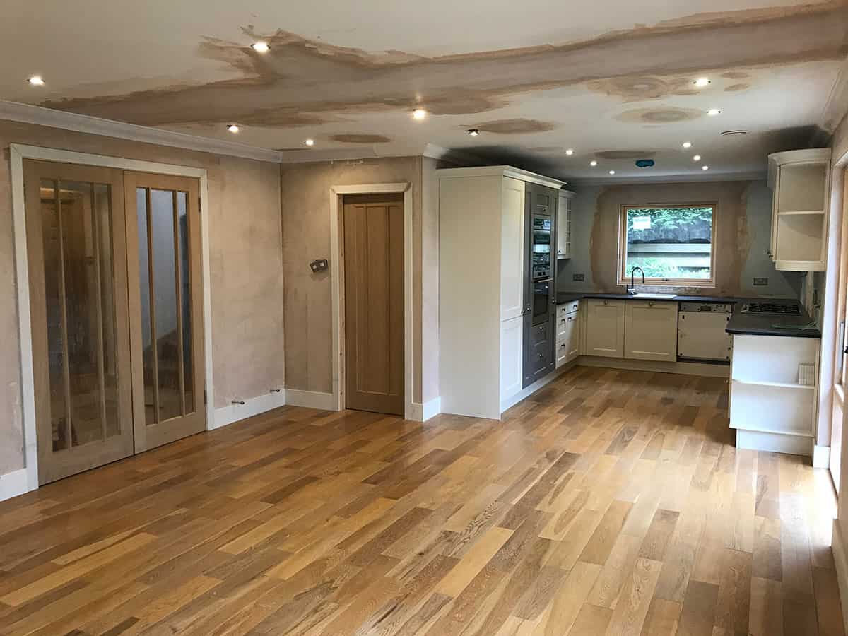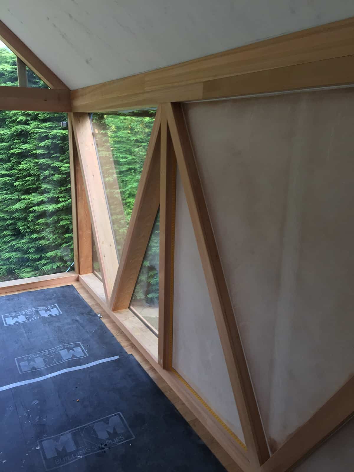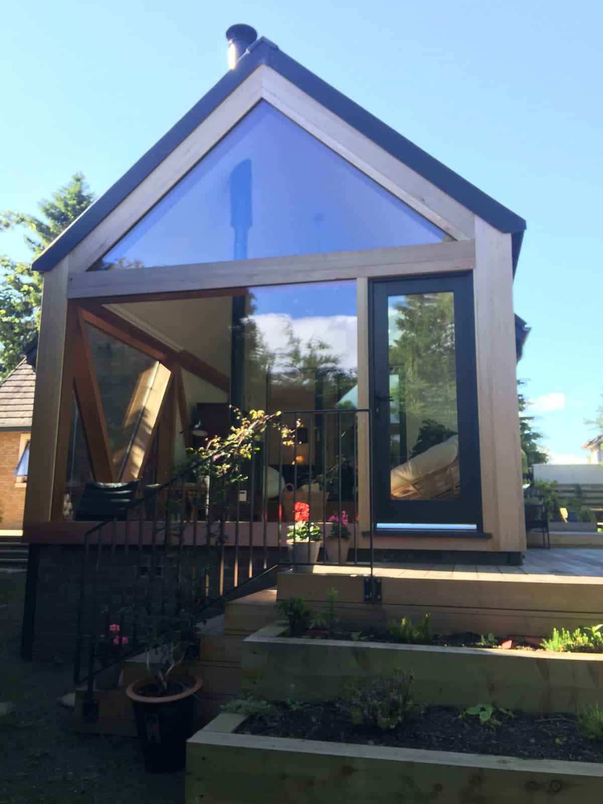 A beautiful contemporary extension designed by Konishi Gaffney. This garden room was built with large triangular sections of glass totally enclosed with cedar. It has a zinc roof and a large larch deck wrapping around the rear of the house and extension. New Aluminium clad windows were installed throughout the house along with new kitchen and utility.