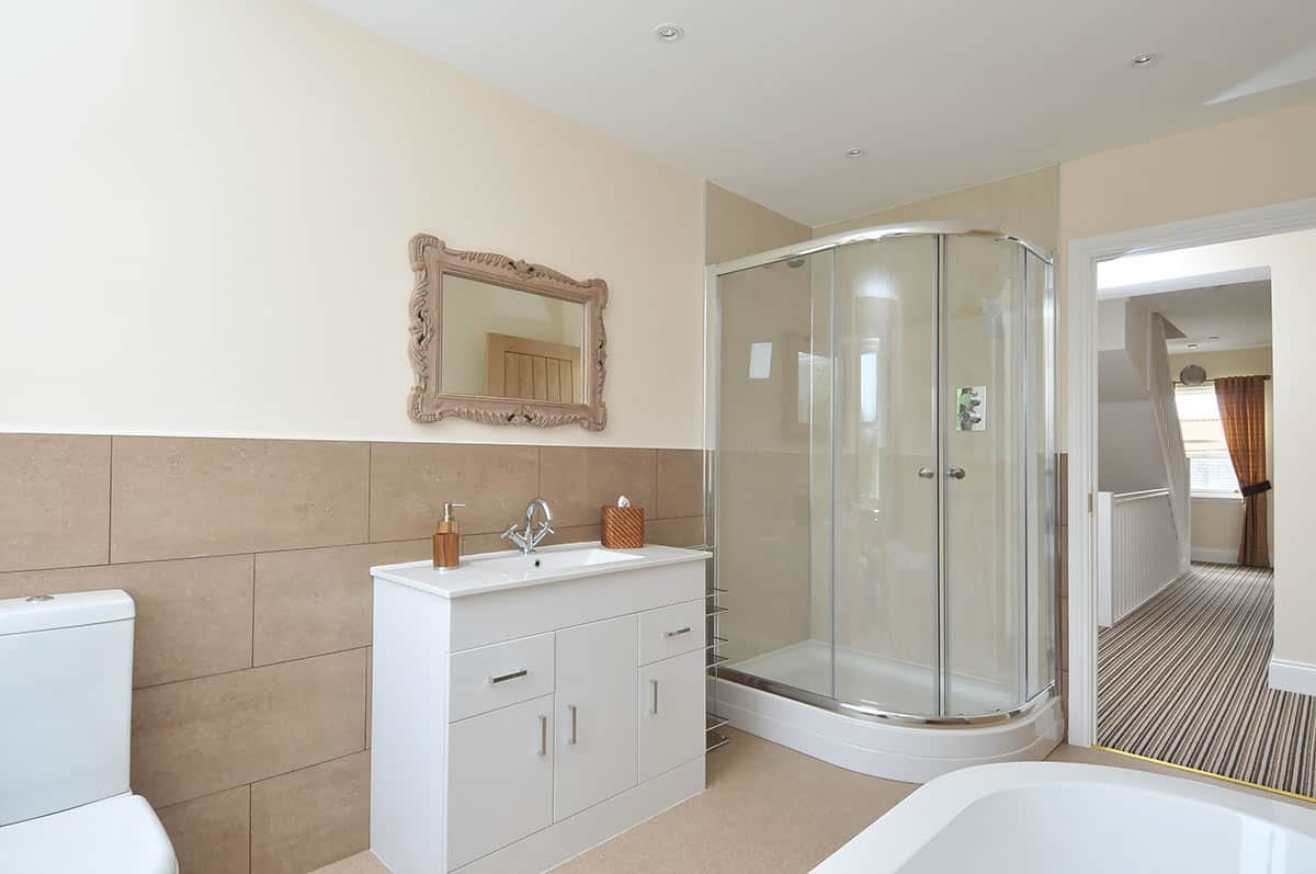 This beautiful holiday home began life as a doctor’s surgery, before becoming part of an Outdoor Activity Centre, before being taken over by our team and converted into one of six town houses. A traditional three storey stone-built dwelling required major ‘surgery’ of its own to bring it into the 21st century. Our remit for this project was to refurbish it to a very high standard to provide luxury holiday accommodation with a double and twin room bedroom on the first floor and a double on the second floor. Our designers managed to incorporate 2 bathrooms and a cloak room as well as a beautiful Kitchen and lounge. A large decked roof terrace gave uninterrupted views of the surrounding countryside.