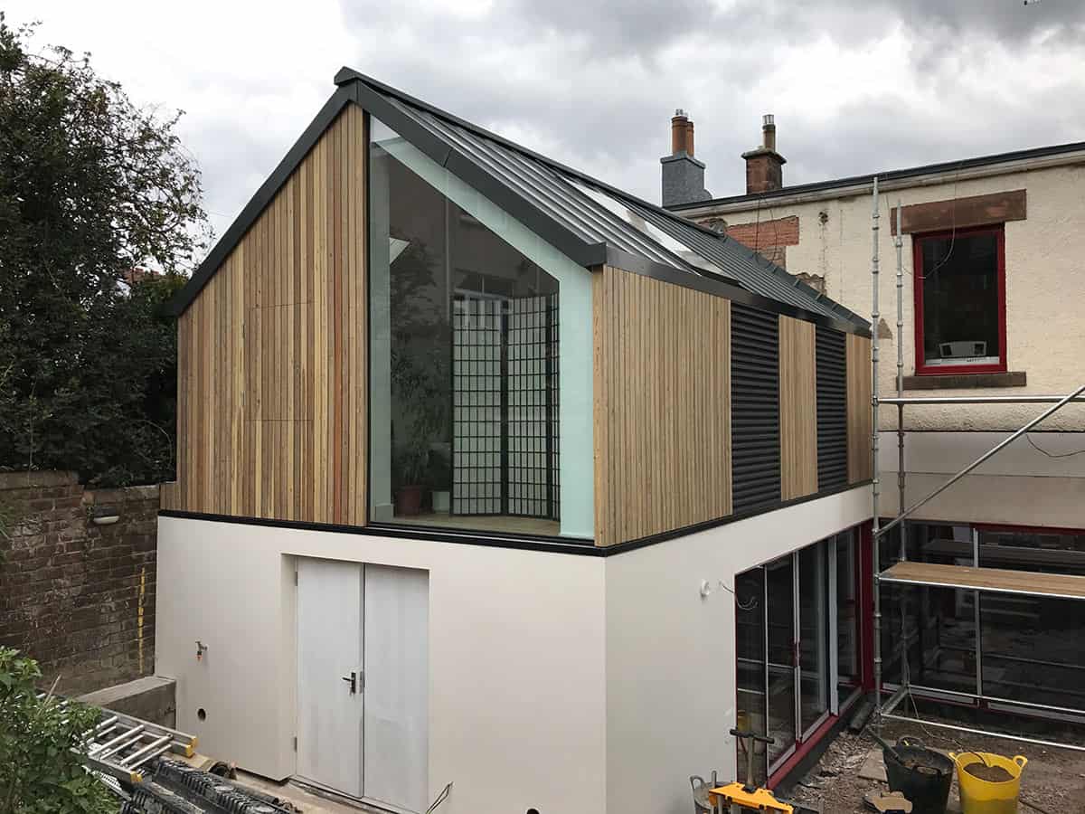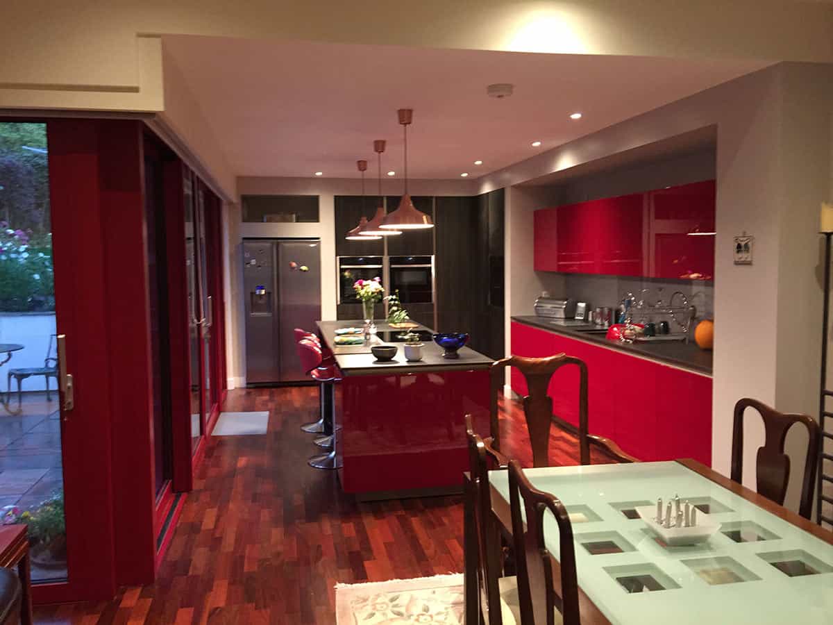 An old extension was removed to create this beautiful striking extension by Konishi Gaffney. A full house width slapping created a spectacular kitchen with sliding doors into the garden.